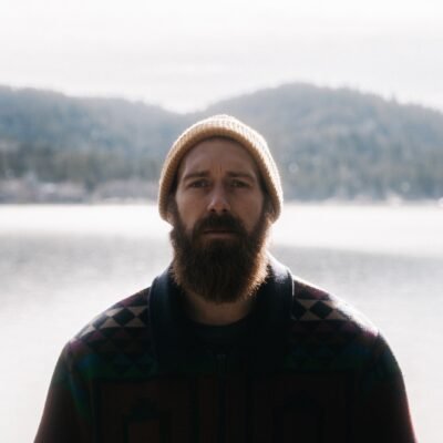 smiling man wearing blue and white gingham button-up collared shirt putting his hands on his pocket
